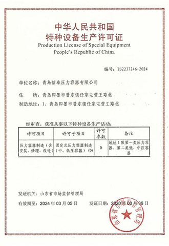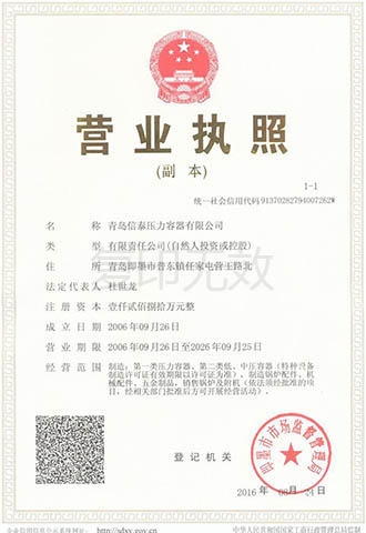 青島信泰壓力容器有限公司擁有山東省質(zhì)量技術(shù)監(jiān)督局頒發(fā)的D1D2類壓力容器設(shè)計許可證和制造許可證,產(chǎn)品主要有:低中高壓儲氣罐系列、壓縮空氣罐、氮氣罐,氧氣罐,氫氣罐,真空罐不銹鋼儲氣罐、蒸汽儲氣罐、分氣缸,氣體緩沖罐系列、換熱器,穩(wěn)壓罐產(chǎn)品、儲存容器,化工容器、標(biāo)準(zhǔn),非標(biāo)壓力容器系列產(chǎn)品,主要配套與石油、化工、制藥、熱電、啤酒、機(jī)械制造、環(huán)保等行業(yè)所需D級壓力容器產(chǎn)品,形成多品種的中低壓力容器生產(chǎn)品種及規(guī)模。公司本著“客戶第一,誠信至上”的原則,熱誠歡迎各界朋友前來參觀、考察、洽談業(yè)務(wù)。